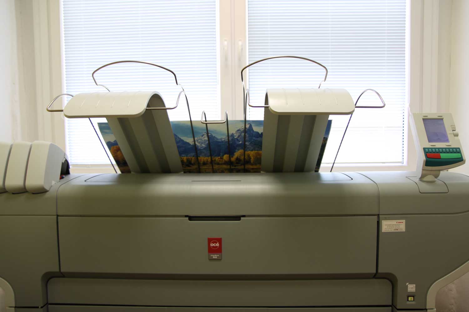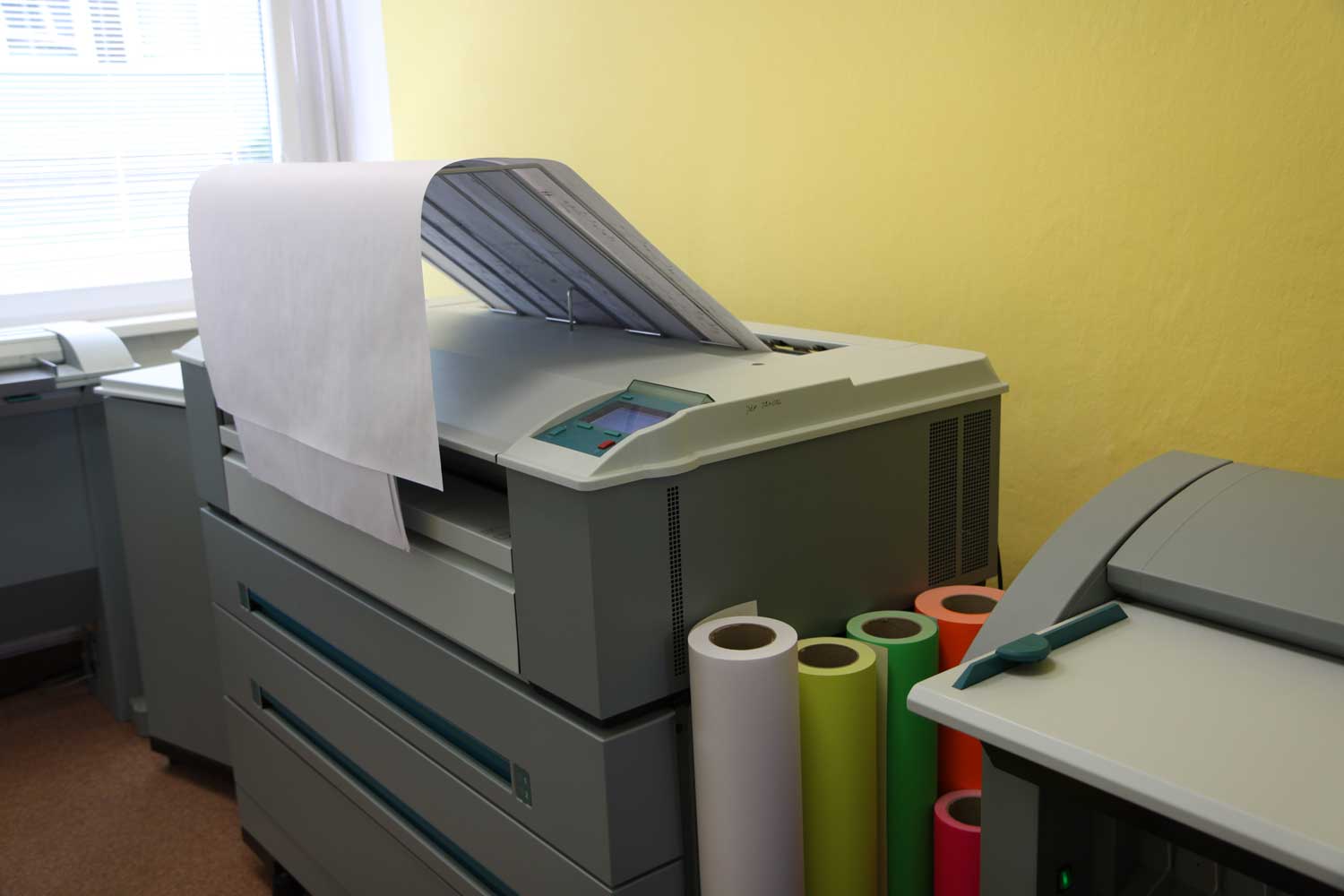 - barevný a černobílý tisk a kopírování na plotru do formátu A0+ (fotokvalita),